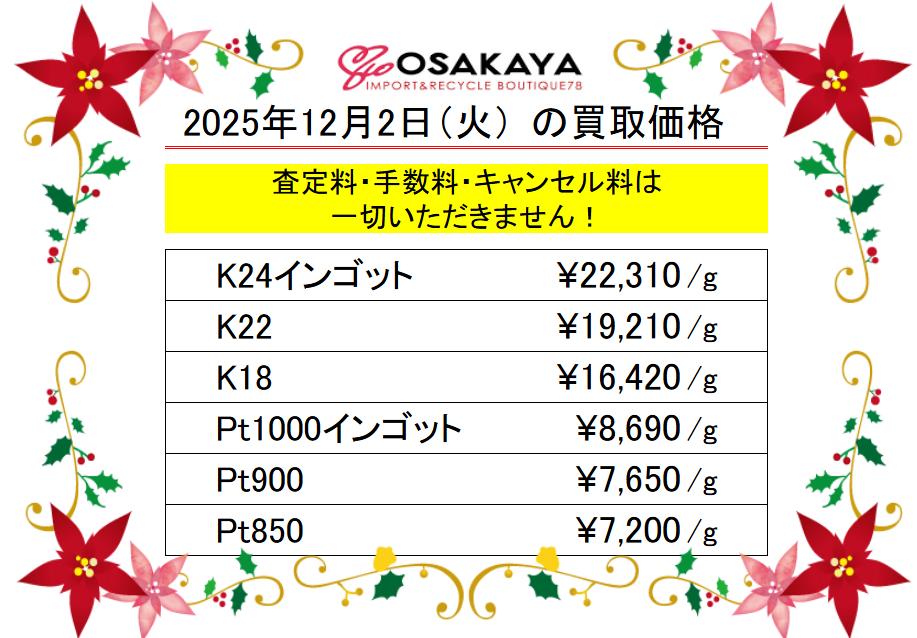 <本日の貴金属買取価格をお伝えします!>